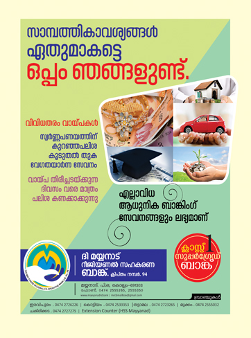The Mayyanad Regional Co-operative Bank, offers wide variety of Loans Products to suit your requirements.
